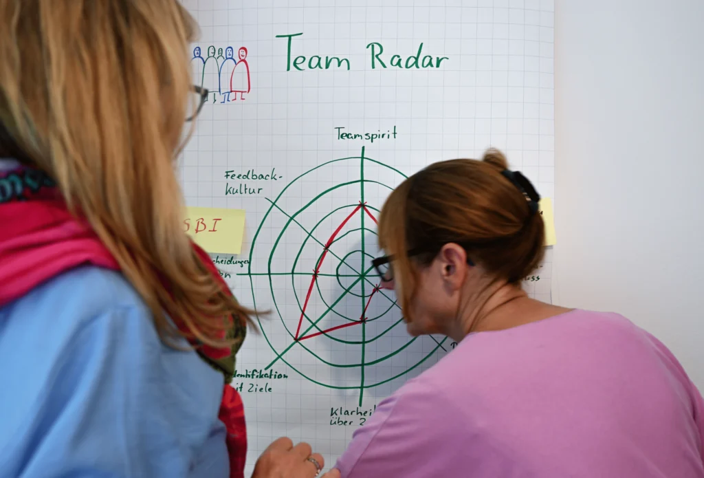 Den aktuellen Teamstatus sichtbar machen: Erkennen Sie Stärken, Herausforderungen und Entwicklungspotenziale auf einen Blick und entscheiden Sie, welche Aspekte Sie angehen möchten.